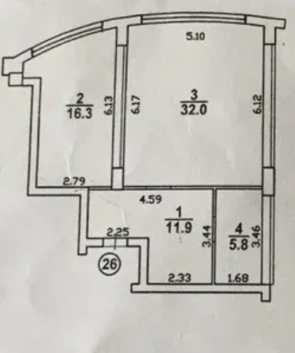 Площа: 66 м² — легко планується у двокімнатну!